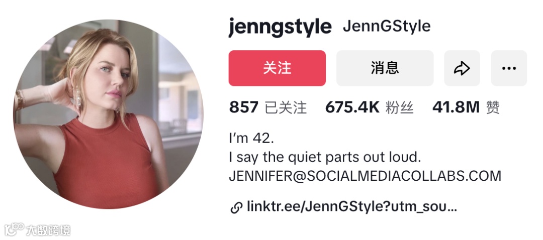 JennGStyle,本名Jennifer,今年42岁。她的自我介绍一句话便道出核心:“I’m 42. I say the quiet parts out loud.”这种敢于直言的姿态,使她与平台上千篇一律的内容创作者形成鲜明区隔。