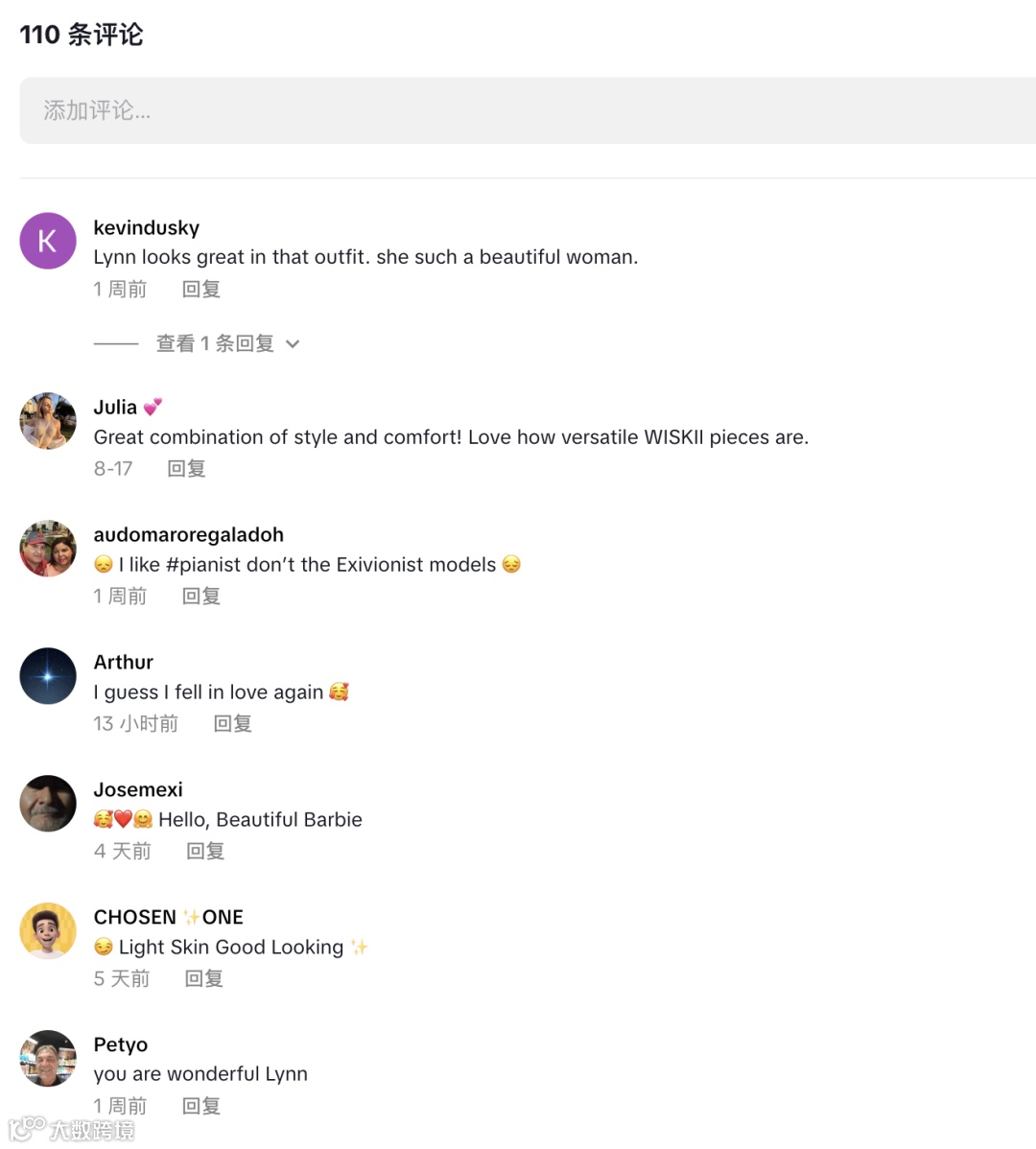 对于出海营销,WISKII并不满足于单纯的模特展示,而是希望找到兼具艺术气质与生活方式影响力的创作者。于是,拥有二十万粉丝的TikTok钢琴博主lynnpianist,成为了他们理想的合作伙伴。
