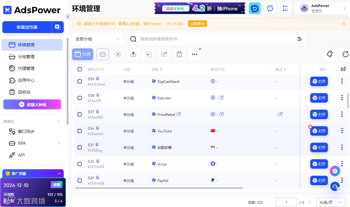 实操时记得:不管登哪个平台的账号,先在 AdsPower 里选定对应环境(比如登美国返利平台就选美国 IP 环境,登英国社媒账号就选英国 IP 环境),确认环境稳定后再操作 —— 这是从推广到变现,全流程保障佣金和账号安全的基础。