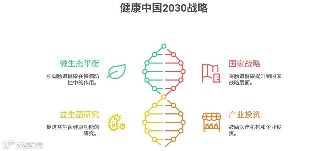 “健康中国2030”规划纲要中提出,微生态平衡是慢病防控与免疫提升的关键路径,肠道健康被提到国家战略层面。此前,“十三五”国家重点研发计划开展了与益生菌健康功能相关的研究,为肠道微生态产业的发展奠定坚实基础。