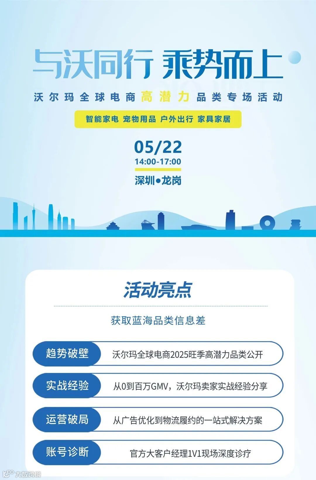 5月22日,Surpath驿玛科技联合PingPong与沃尔玛全球电商团队推出首期【沃尔玛全球电商高潜力GMV品类专场】活动,聚焦刚需品类增长路径,助力跨境卖家挖掘全球市场新机遇。