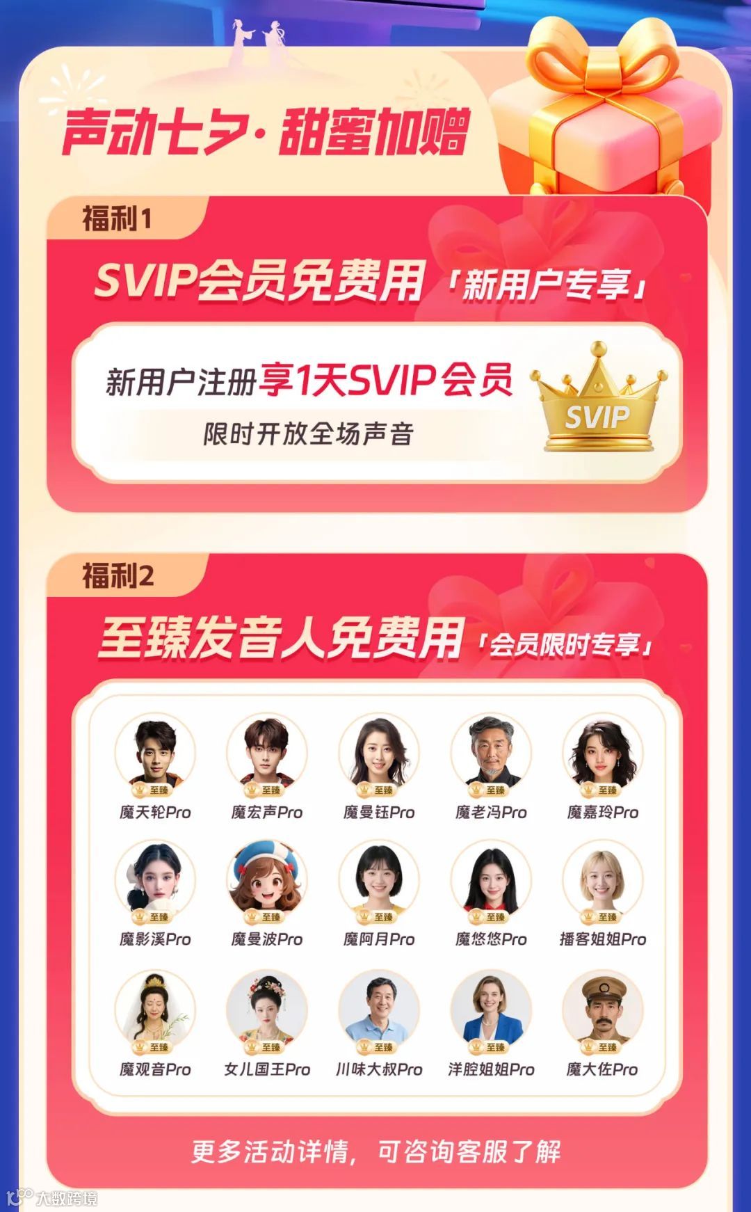 魔音七夕甜蜜福利月开启:会员加赠、声音克隆、抽奖豪礼
