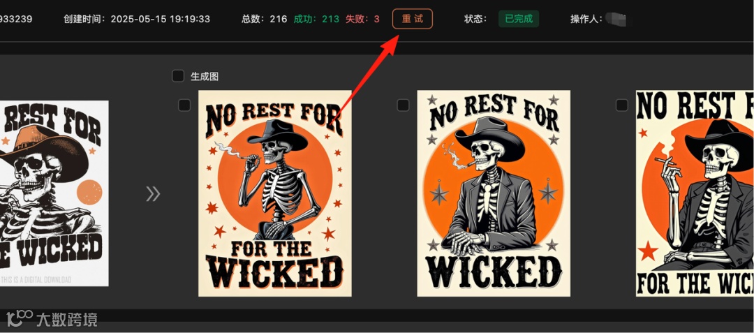 生成任务失败后,可在全局任务详情页一键重试,无需重复操作,提升生成效率与使用体验。