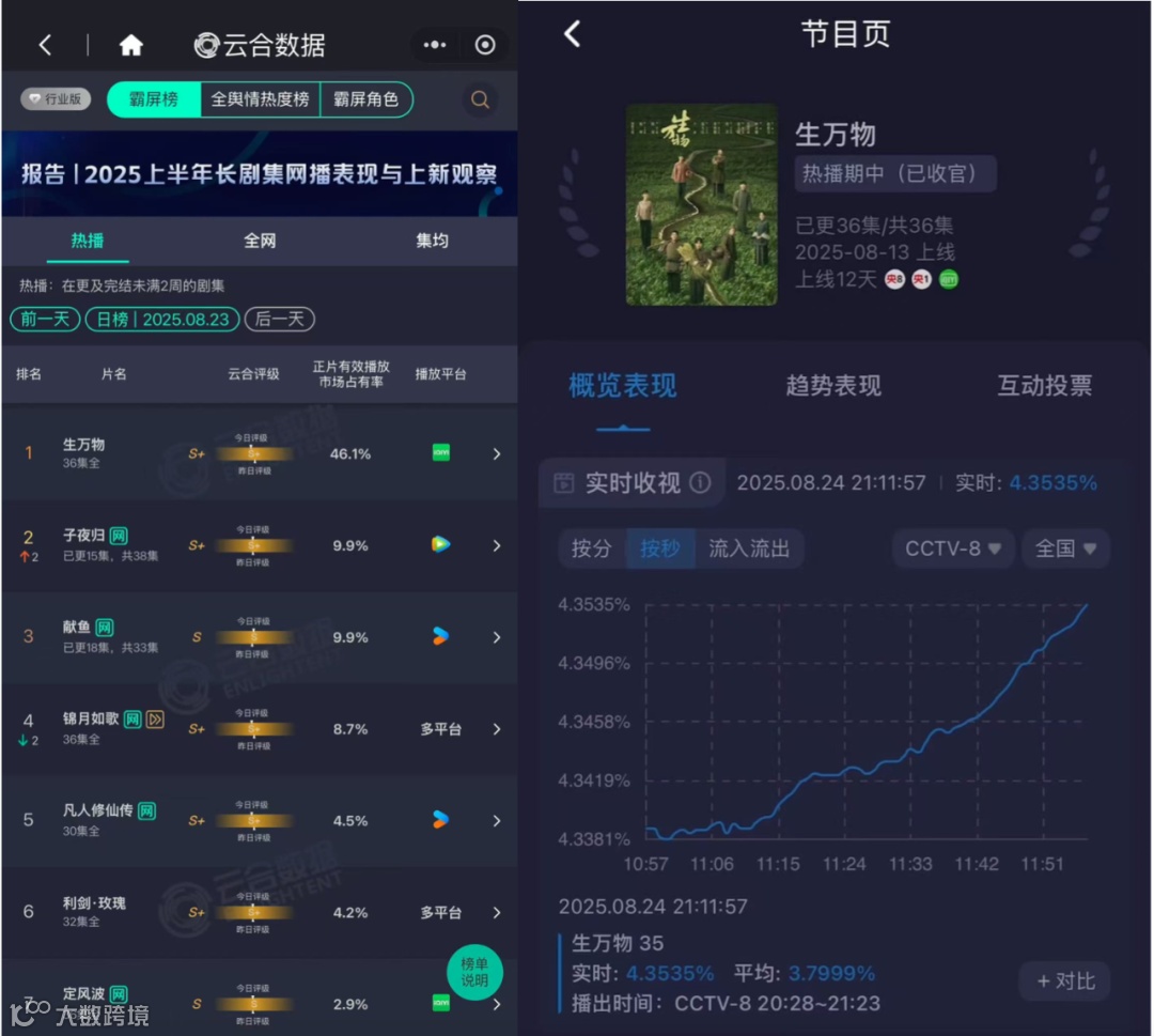 《生万物》的成功,是高品质内容的胜利——在追求短平快的当下,严肃题材、厚重叙事与匠心制作依然能击中大众情绪,实现口碑与热度双赢。