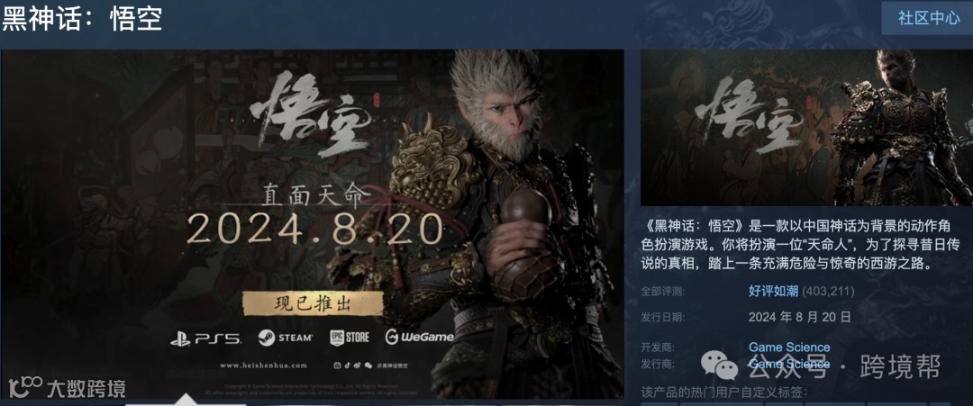 《黑神话:悟空》全球上线,中国游戏出海迈入3A时代