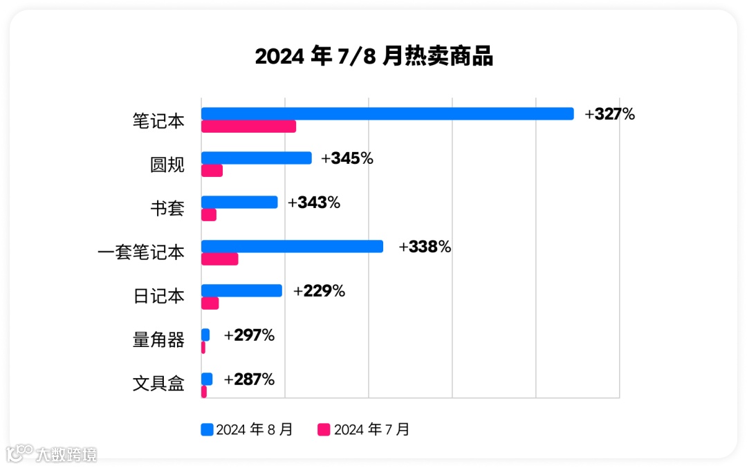 文具是中小学生、大学生及教师开学必备,需求刚性且覆盖面广。铅笔、笔袋、笔记本、书皮等基础品类销量显著上升。