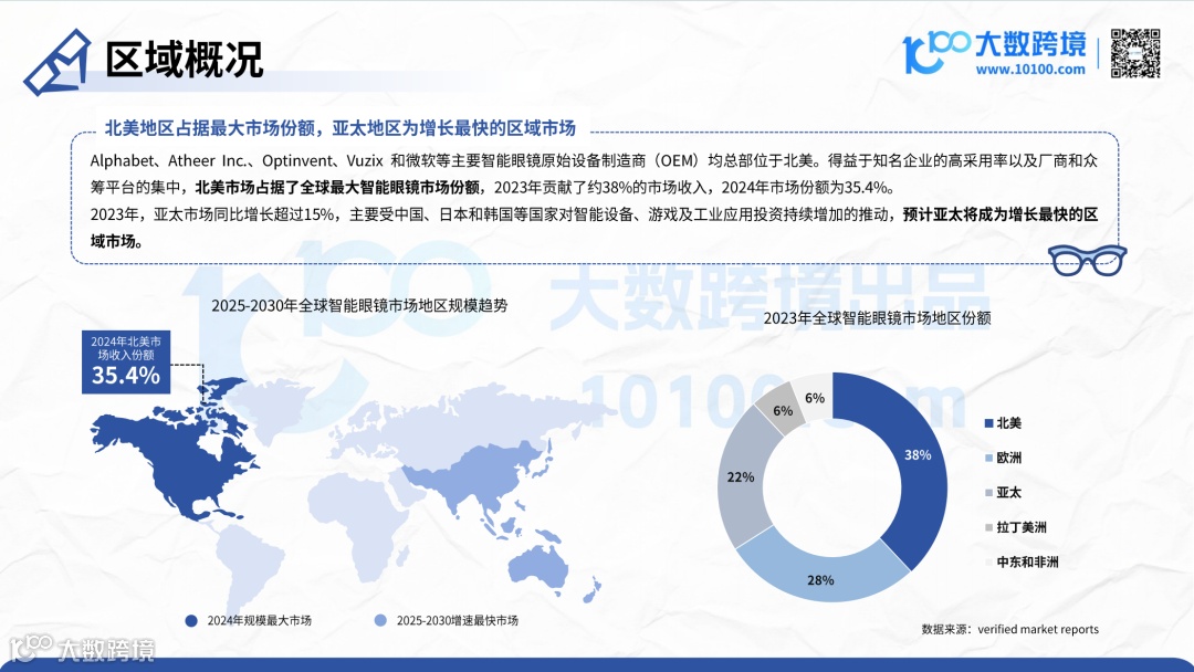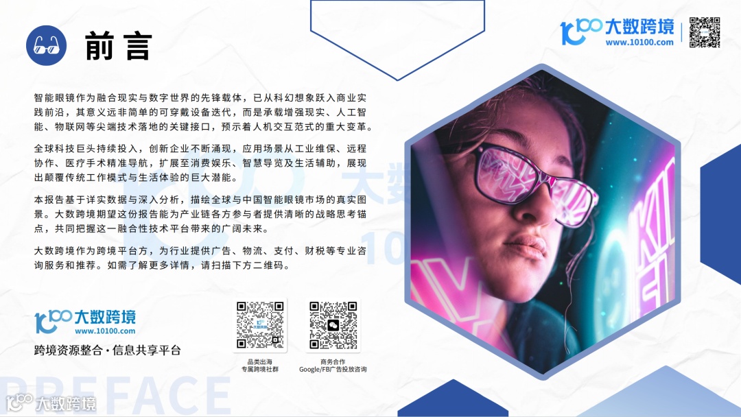 全球市场在苹果Vision Pro的催化下迎来爆发前夜,这不仅是一场技术革命,更是一个蕴含千亿级机遇的蓝海市场。本期内容将深度解析全球智能眼镜市场的格局变迁、区域消费者偏好与政策环境,旨在为中国科技企业扬帆出海,提供一份精准的航路图。