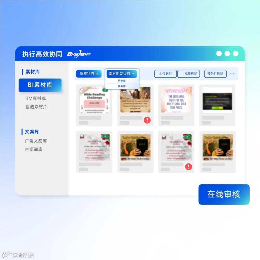 素材上传后自动推送至内外部审核节点,全程可追溯,避免人工传递延误。既保障合规性,又显著缩短审核周期,高效衔接创作与投放。