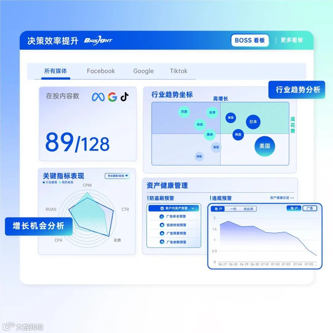 BI4Sight作为融合BI与AI的商业智能系统,深度对接Meta、Google、TikTok for Business等主流媒体生态,将分散数据转化为可直接驱动增长的资产,实现投放管理从“被动响应”到“主动掘金”的升级。