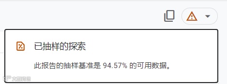 可通过报告右上角红色感叹号查看具体抽样比例,建议优化查询范围或升级至GA4 360以降低抽样率。