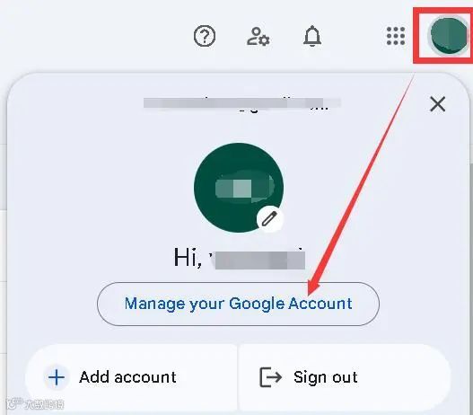 - 点击Google账号头像,进入“管理您的Google账号”