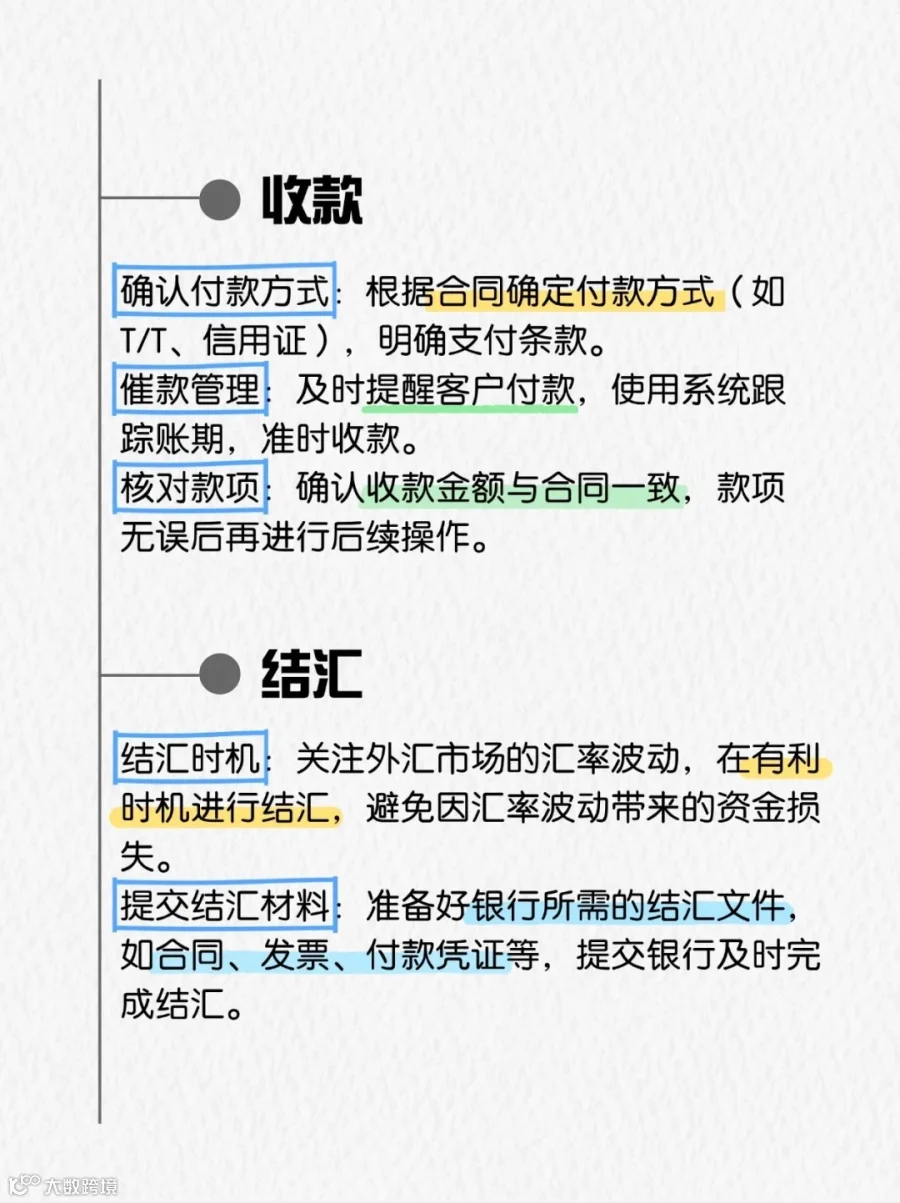 按合同收款:严格执行T/T、L/C等约定付款方式。