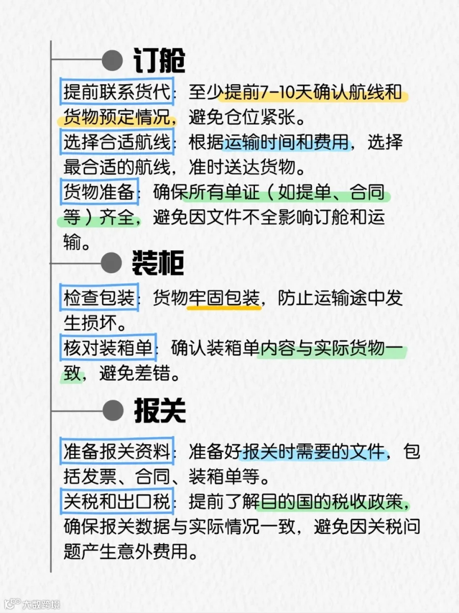 提前7-10天订舱:避免舱位紧张导致交货延迟。