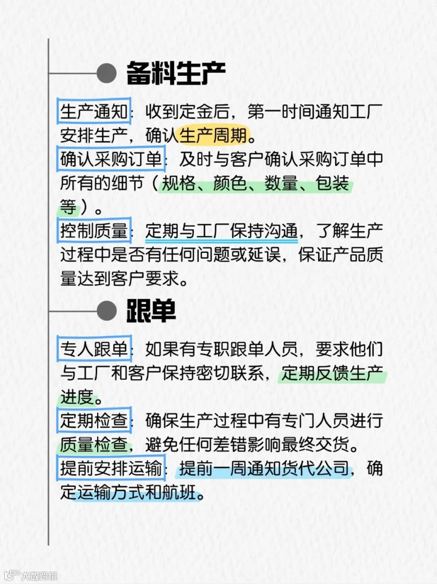 专人跟进:协调工厂与客户,定期汇报生产进展。