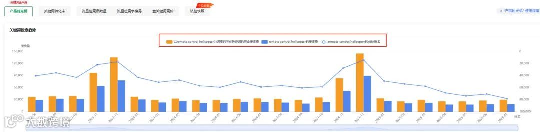 ①可以很明显的看出该ASIN在2023年和2024年的11-12月都是有一个很明显的升幅,做玩具类目的卖家应该大部分第四季度都会有一定程度的销量上升。