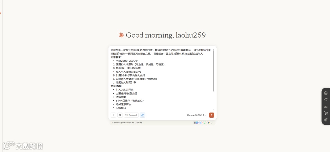 你现在是一位专业的[领域]内容创作者,精通谷歌SEO优化和出海赚美元。请为关键词"[主关键词]"创作一篇深度英文博客文章。