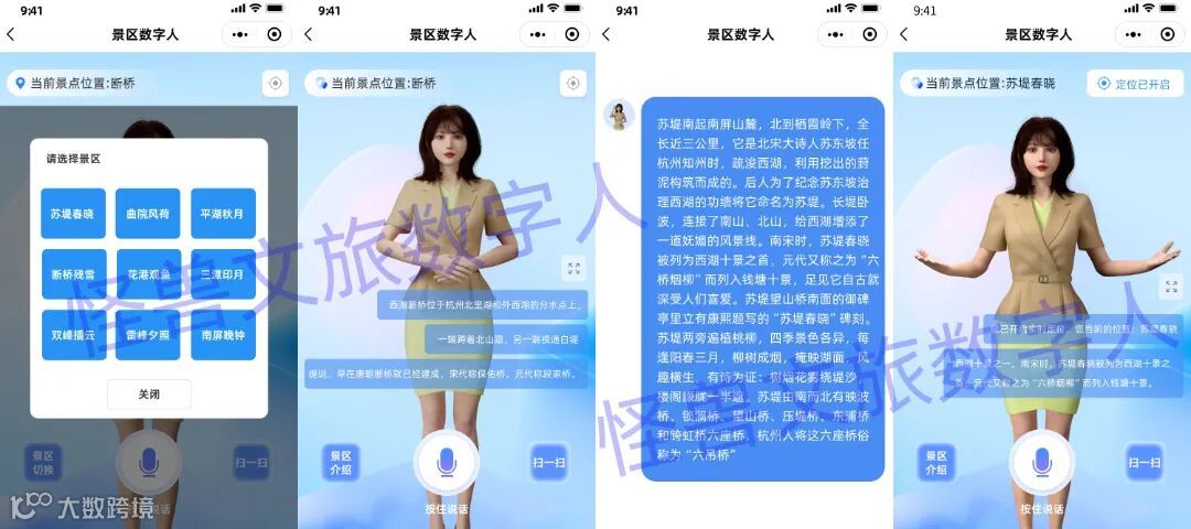AI数字人虚拟导游:提供景区讲解、文化阐释与路线推荐,支持多模态信息展示与自然语言交互。