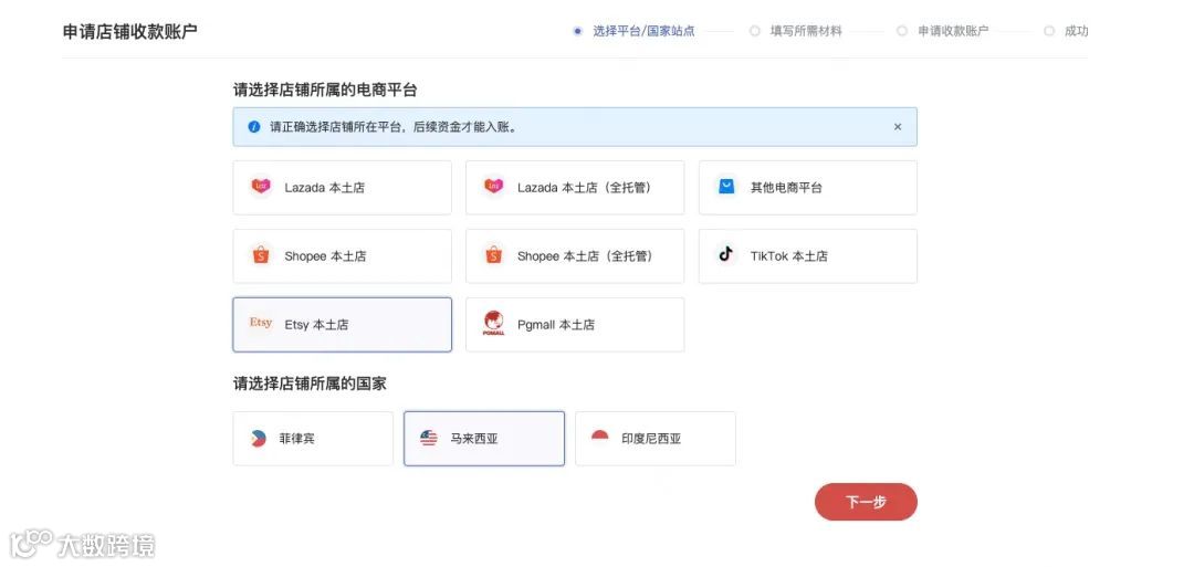 申请开时支付Etsy本土店收款账号(示意图)