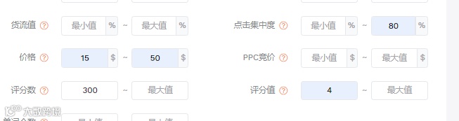 比如宠物类目下月搜索量在一定区间内且月搜索量增长率>10%,但是点击集中度>80%,头部产品的平均评分数<300的市场,另外还可以基于自身条件补充一些过滤条件,像是平均价格在15-50美金,评分值大于4星的市场等等。如果在填写这些过滤条件后,得出的搜索结果过多或者过少,可以不断调整指标值的大小,拿到理想的关键词清单。