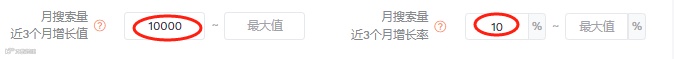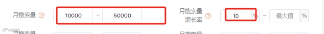 在这个思路之上,月搜索量增长率可以作为补充,进一步细化搜索结果,比如某类目下搜索量大且近一个月搜索量处于增长的市场。