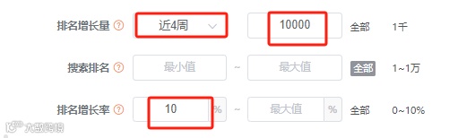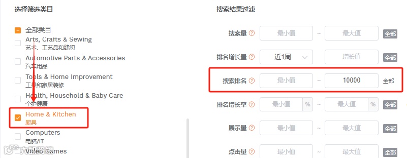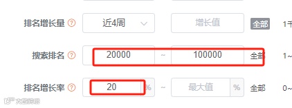 搜索排名设置在2万到10万之间,排名增长率20%以上,这样市场没有太靠前,又有增长趋势,很适合中小卖家。