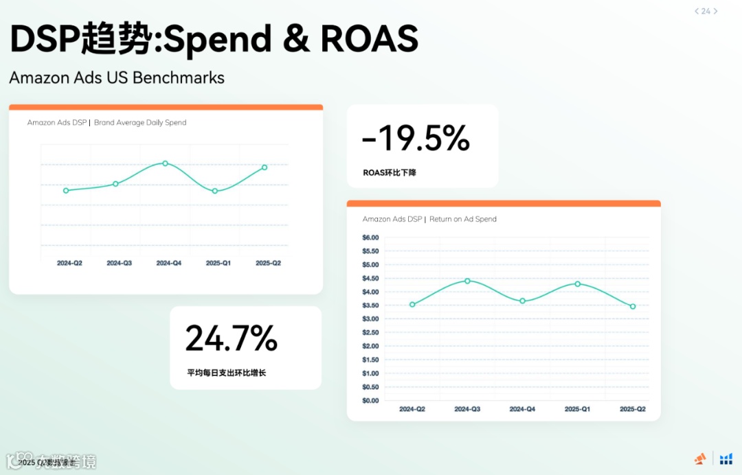 Amazon DSP广告受成本上升与参与度下降影响,ROAS环比下滑,获客效率减弱。