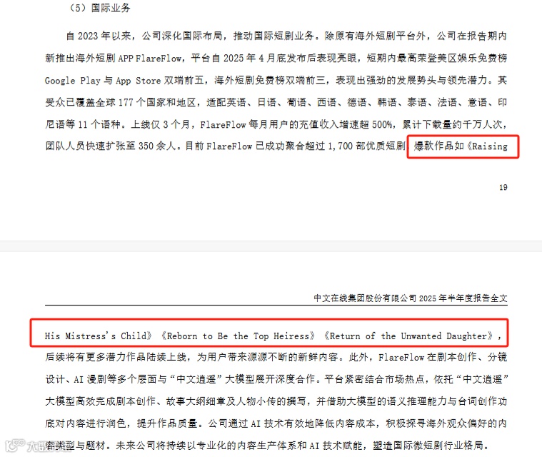中文在线在财报中所称的爆款内容为 "Raising His Mistress's Child", "Reborn to Be the Top Heiress", "Return of the Unwanted Daughter" ,这三部作品在使用中并未在APP中看到。