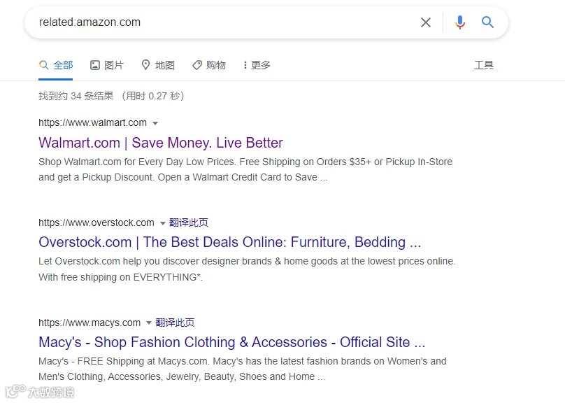 在谷歌搜索栏输入“related:域名”(如related:amazon.com),可查找与该网站相似的平台。此方法适用于大型网站,能快速挖掘同类主流电商平台。