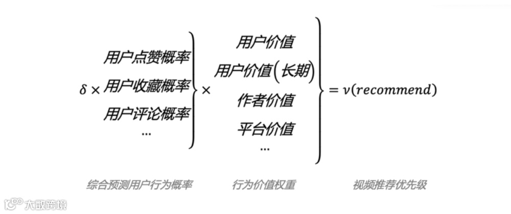 推荐优先级 = 用户行为预测概率 × 行为价值权重