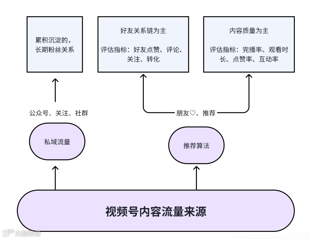 视频号流量 = 私域流量 + 推荐算法,2025年社交属性进一步增强。