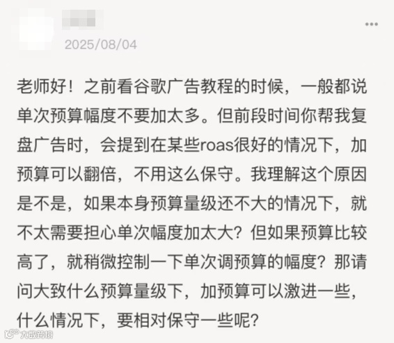 经过多个广告系列复盘发现:能否激进加预算,关键不在于当前预算高低或增幅比例,而在于该广告系列是否仍具备充足的精准获客空间。