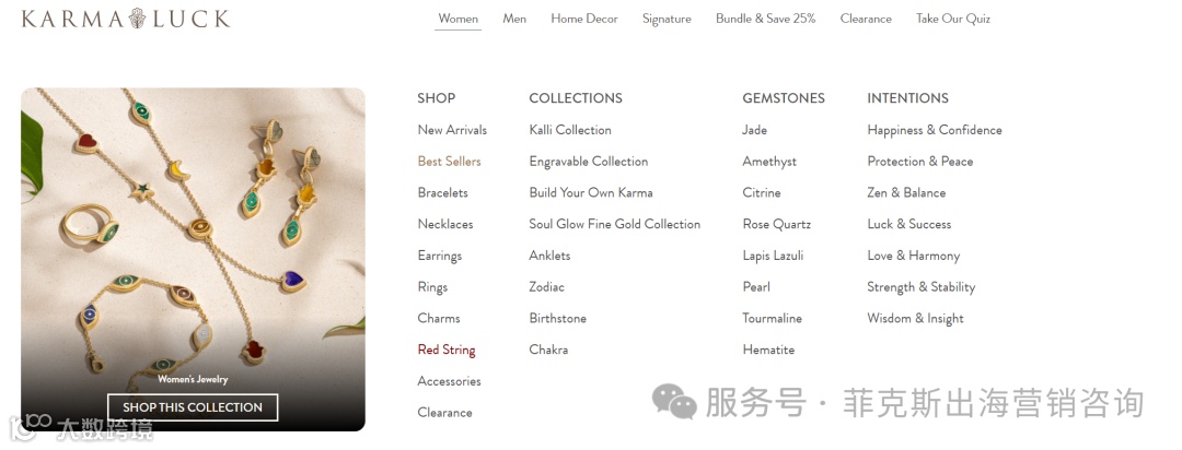 品牌通过讲述产品背后的文化故事,吸引了大量关注。Karma and Luck官网中将配饰能够带来的玄学能量进行分类,同时推出吉祥物系列珠宝,这不仅仅是一种文化符号,更激发了消费者的购买欲望。