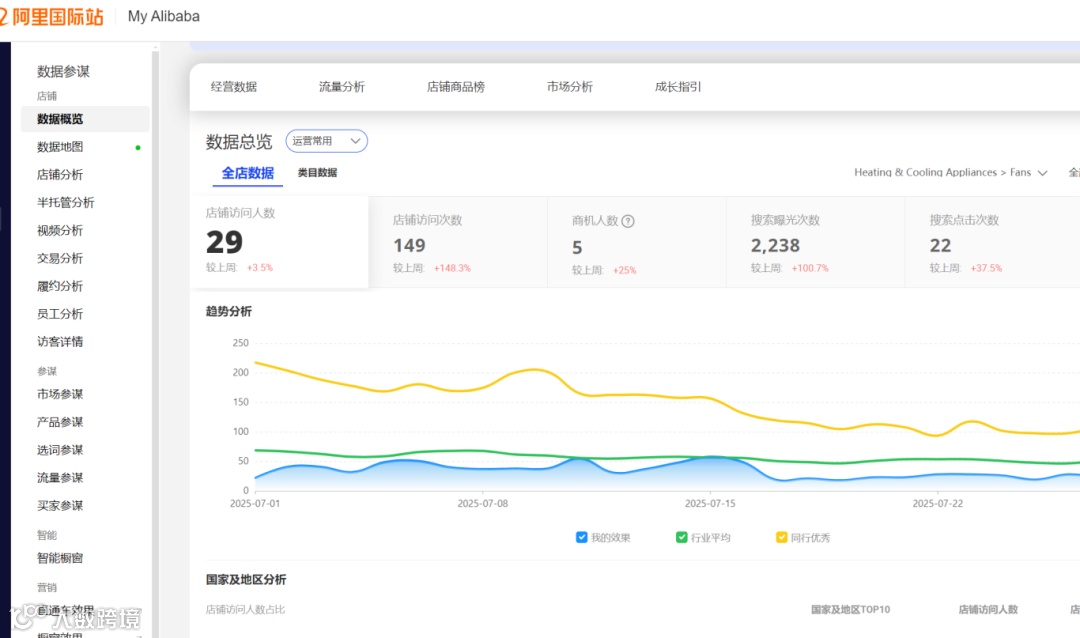 店铺数据概览包含了店铺数据总览、访客的国家地区分析、店铺流量分析以及产品分析等一系列版块,有助于我们快速和全面掌握店铺情况,分析相关数据以及做相关运营决策,是运营每天都必须要看的版块