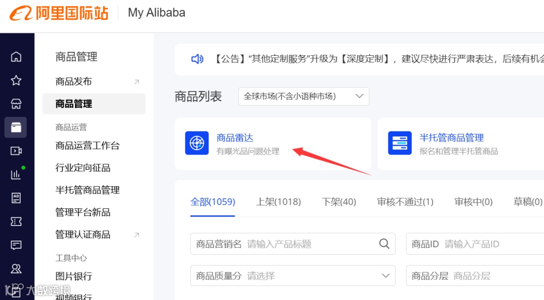 由于国际站产品规则变动频繁,目前商品雷达不仅会每天扫描店铺问题产品,也会经常扫出违规产品,而违规产品一般只有2周时间等待处理,一旦处理逾期,店铺会被处罚甚至降权,因此建议每天查看商品雷达及时处理问题产品。