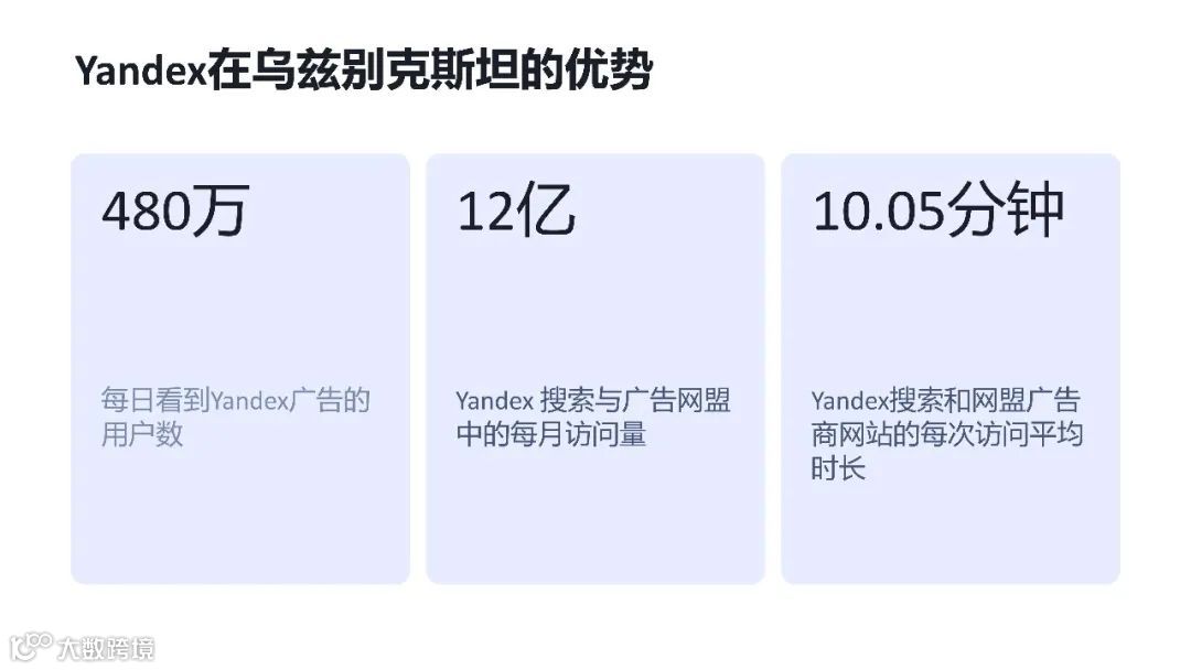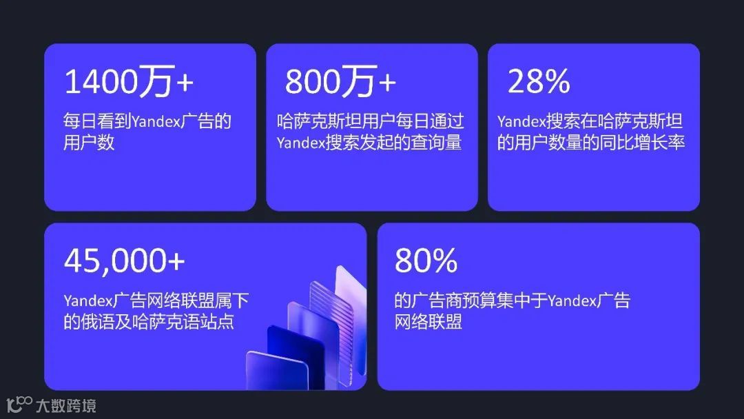 Yandex 广告联盟月访问量达 12 亿,适合快速建立品牌认知。
