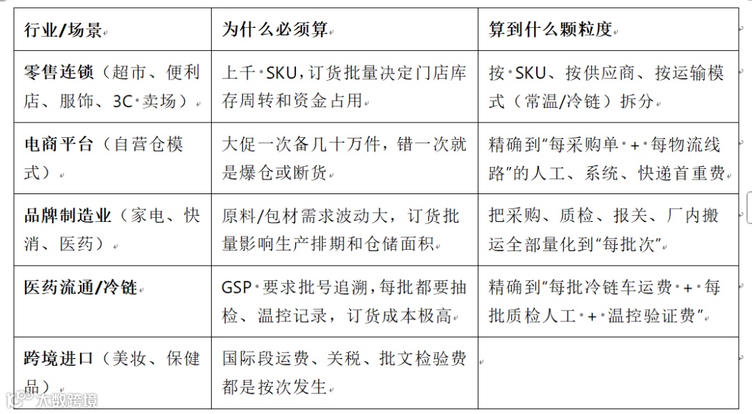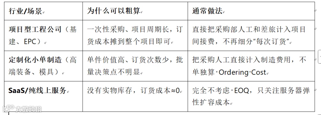 五、必须核算订货成本的企业类型