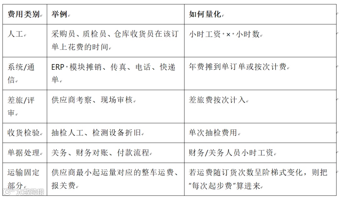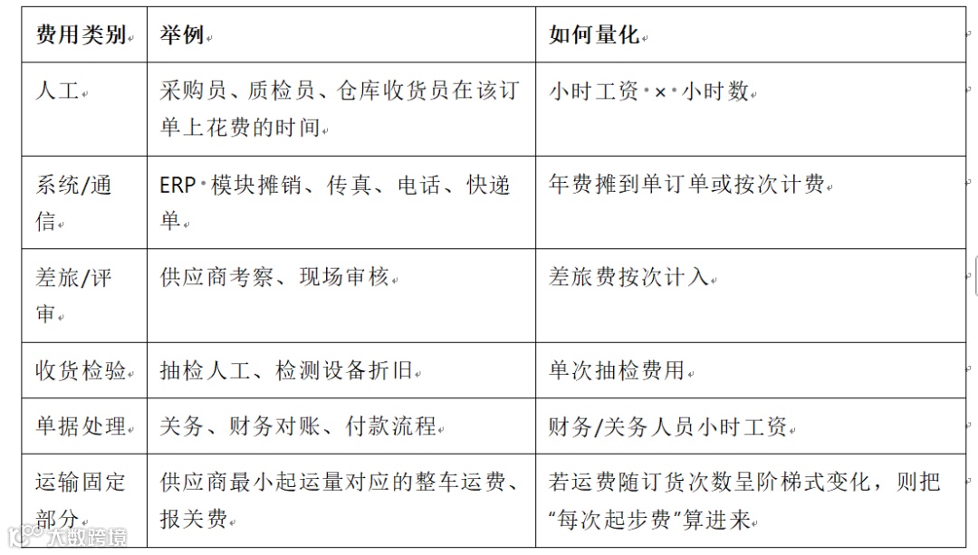 1. **梳理成本清单**:从采购、质检、仓储、财务到物流,逐一识别每笔订单带来的额外工作,并进行量化。