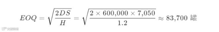 - 单次订货量 Q = 30,000 罐(按整车装载)