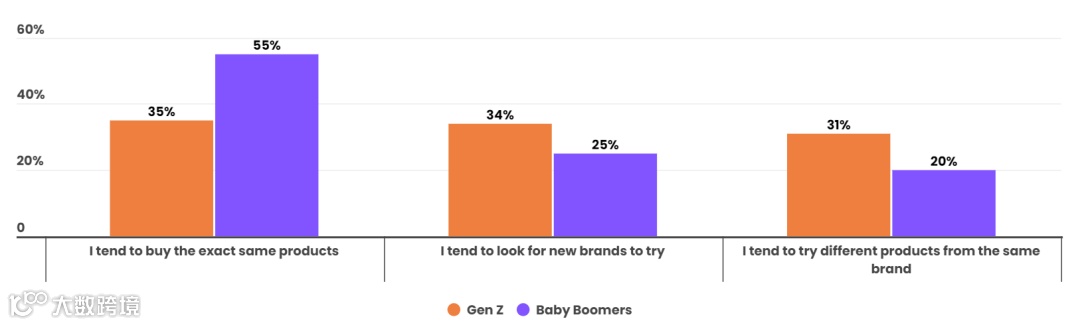 老一代消费者偏好稳定:仅11%婴儿潮一代使用Shein,22%选择Temu。购买比例随年龄增长递减,X世代为37%,婴儿潮一代仅21%。