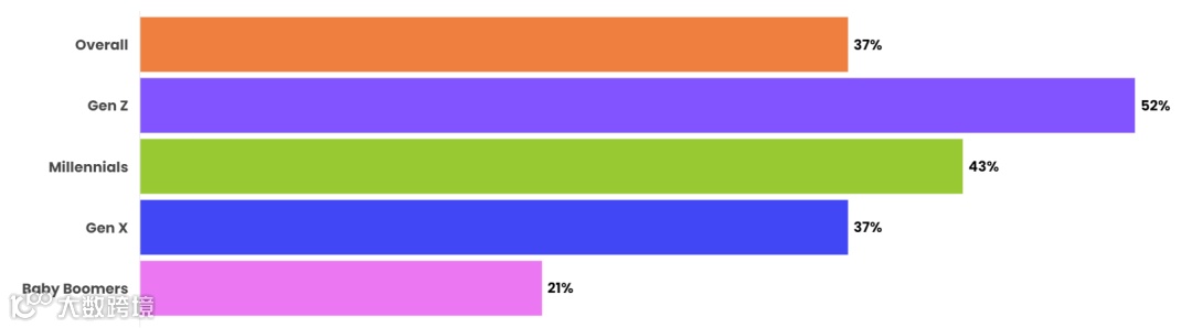 Z世代对新品牌接受度高:36%计划使用Shein购买节日礼物,30%选择Temu;52%美国Z世代曾在Temu购买服装,远高于整体37%的比例。