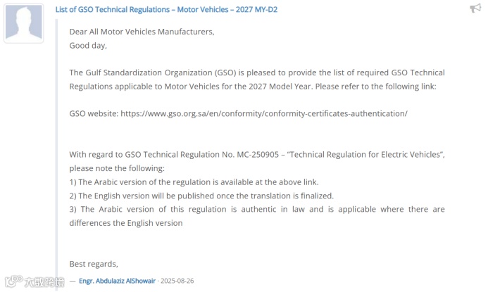 此次法规更新表明,GSO及其成员国在排放控制、电动化转型和智能网联技术方面的监管持续加严,未来进入海湾市场的汽车产品将面临更高的合规门槛。