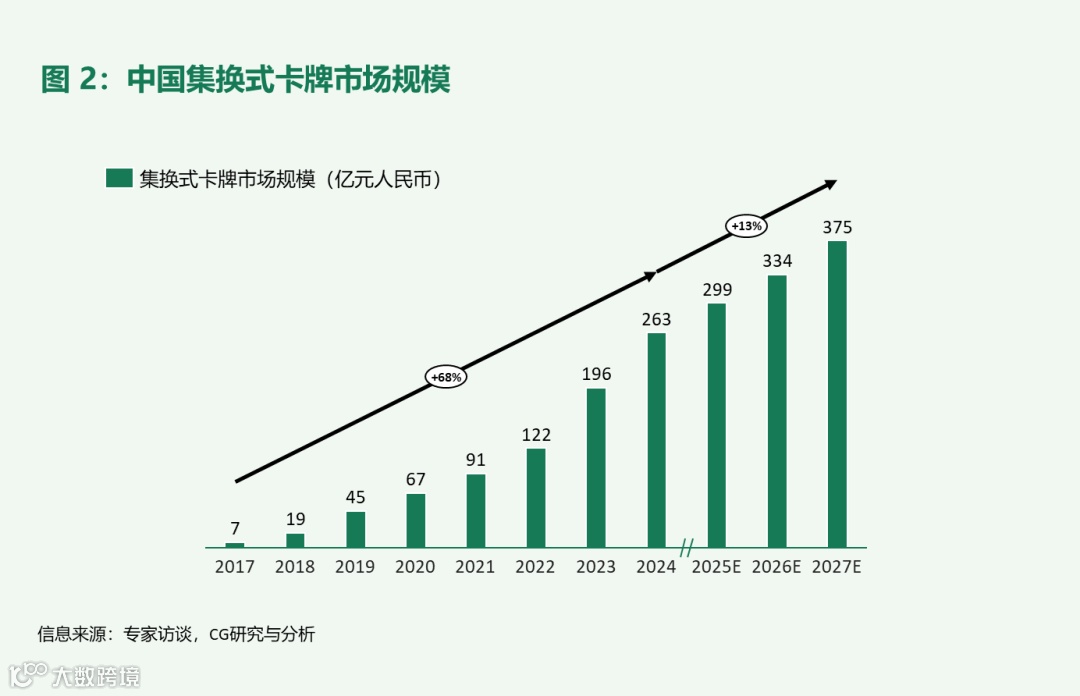 这表明,随着中国居民收入水平的提高,集换式卡牌市场仍有广阔的增长空间。预计到2027年,中国集换式卡牌市场规模可达到375亿元。
