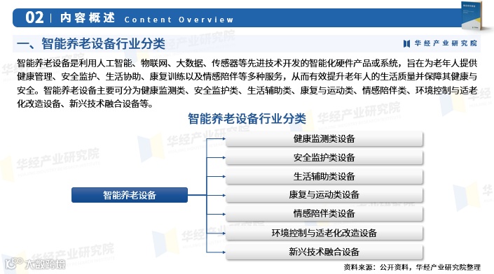 近年来,国家持续出台政策推动智能养老设备产业发展。2025年2月,国家发展改革委等八部门联合发布《促进普惠养老服务高质量发展的若干措施》,明确提出推广人工智能在辅助诊疗、康复训练和健康监护中的应用,加快智能设备在养老机构的普及,提升养老服务智能化水平。