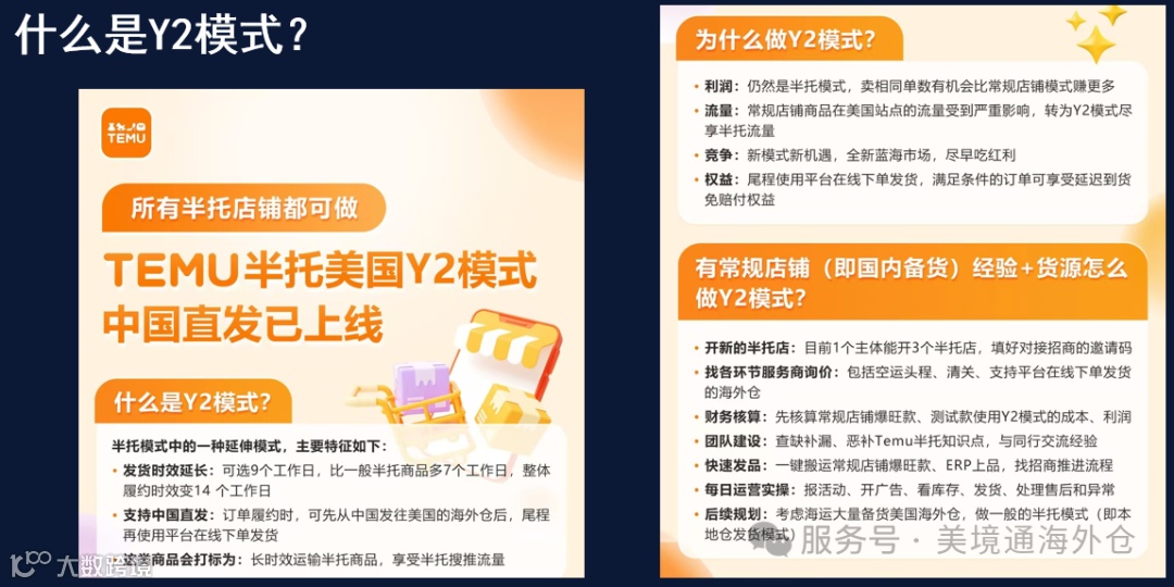 Y2模式即为国内发货至美国的半托管模式。自5月起,平台将大幅增加对半托模式的流量支持,已入驻商家有望迎来销量显著增长,建议提前做好库存准备。