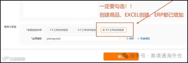 在商品设置中,选择“9个工作日内发货”即为Y2模式,物流时效为2-5个工作日,总履约时效为14个工作日。