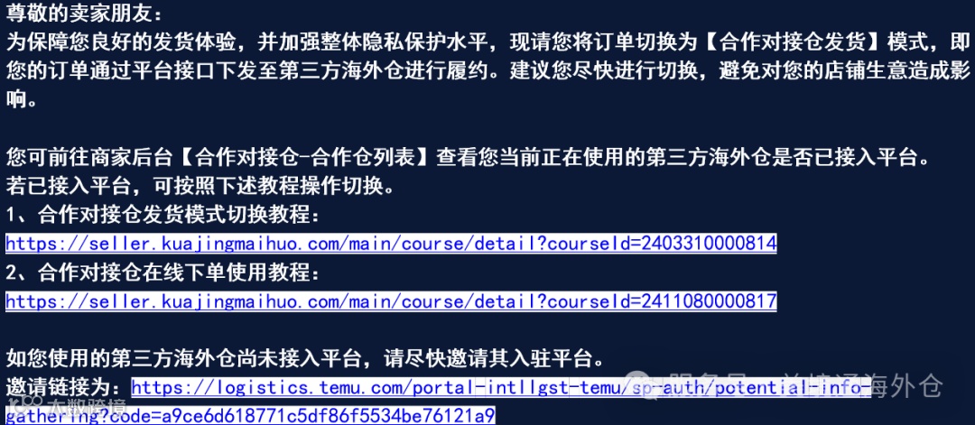 此前使用自建海外仓的商家,平台建议转为TEMU认证合作仓,或邀请现有海外仓入驻平台成为认证仓。