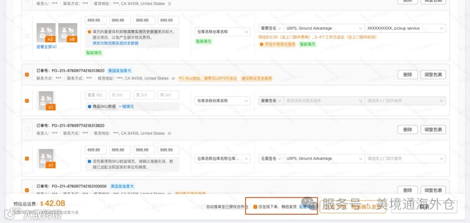 使用call面单时,需启用【仅在线下单,稍后发货】功能,系统将自动勾选该选项。商家可在订单列表手动点击确认发货。