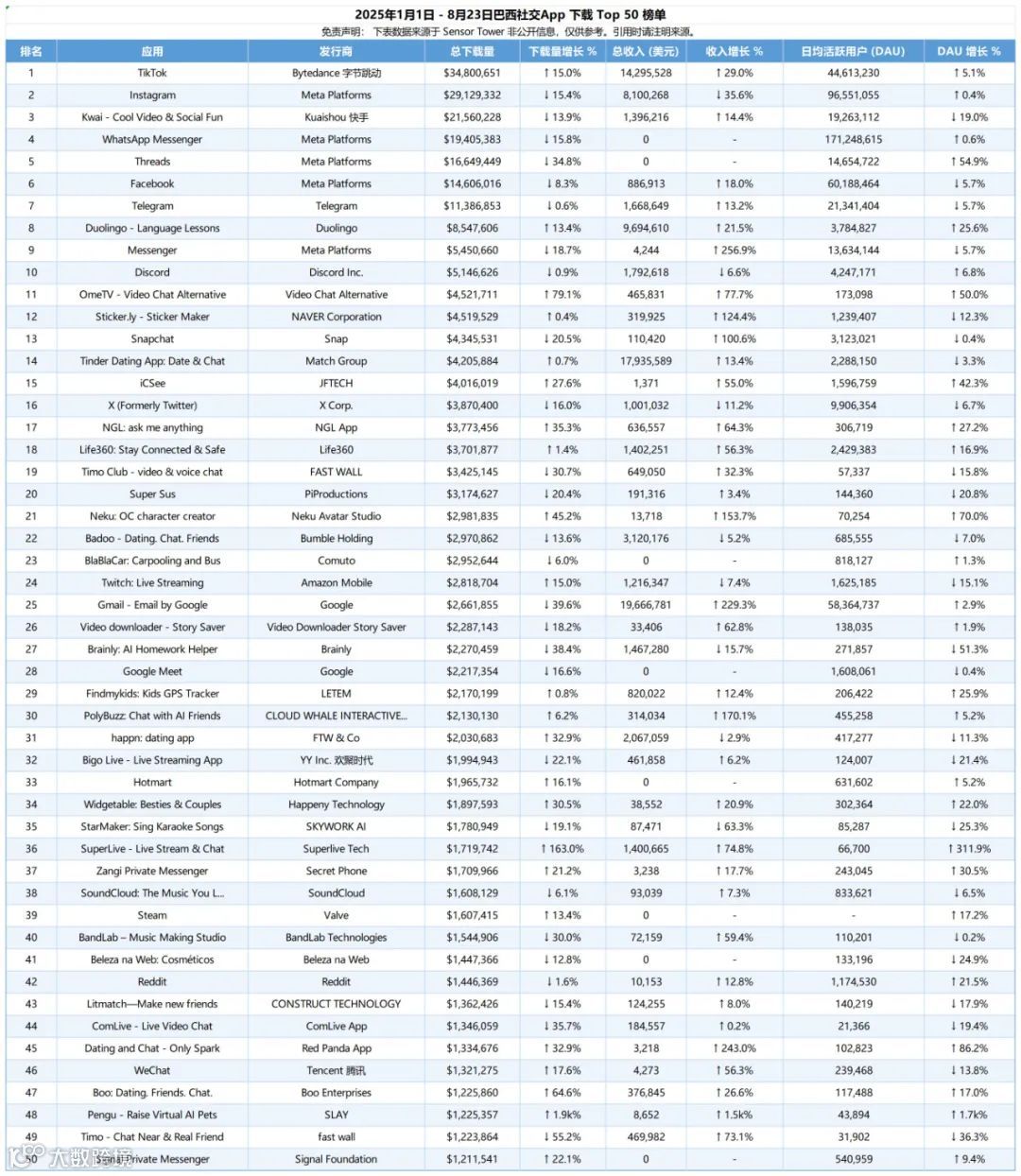 2025年巴西社交类App下载榜单显示,用户正从单向、被动式娱乐平台,大规模转向支持主动参与、深度互动与情感共鸣的新兴应用。这一迁移背后,反映出Z世代对社交体验的更高诉求:从“看”到“参与”,从“匹配”到“共鸣”。