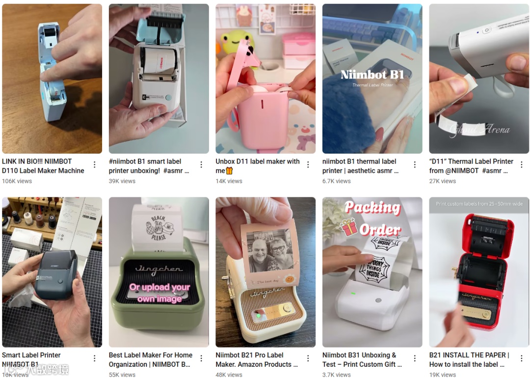 在社交媒体方面,NIIMBOT联合YouTube多位KOL及素人创作者发布评测与使用教程,全面展示产品功能与应用场景。官方同步输出高质量视频内容,并结合SEO优化提升搜索曝光,形成“达人种草+官方强化”的传播闭环。