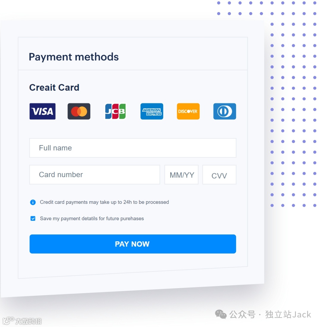信用卡支付在欧美、日韩市场普及率高,尤其适合以欧洲为主的独立站。